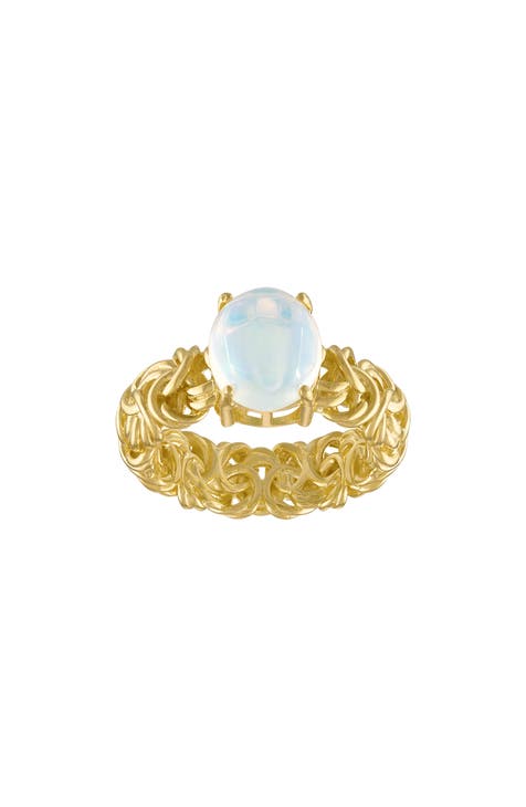 Anillo de banda bizantina de plata de ley chapada en oro de 14 quilates con ópalo