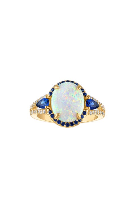Anillo de Cóctel de Ópalo Cultivado en Laboratorio y Zafiro Cultivado en Laboratorio