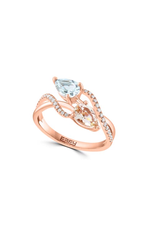 Anillo de oro rosa de 14 quilates, aguamarina, morganita y diamantes