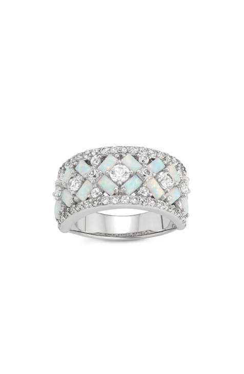 Anillo de plata de ley con ópalo cultivado en laboratorio y zafiro blanco