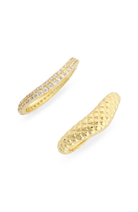 Juego de dos anillos apilables de texturas variadas y circonitas