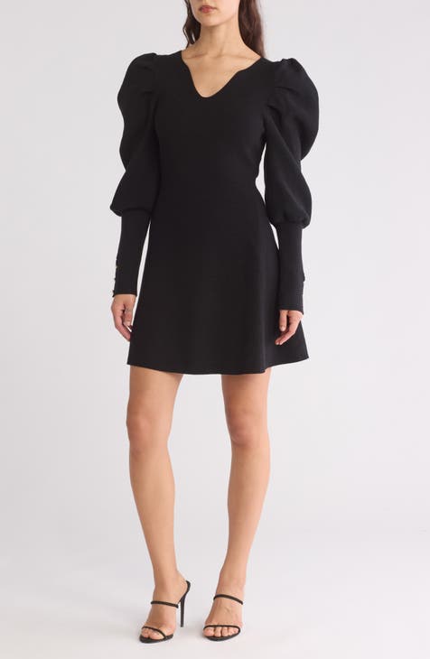 Minivestido estilo suéter de canalé de manga larga abullonada