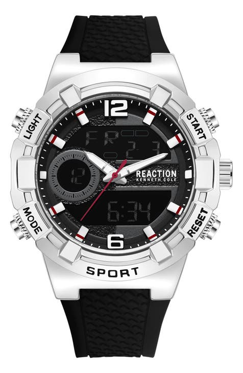 Reloj con correa de silicona y pantalla analógica y digital, 46 mm