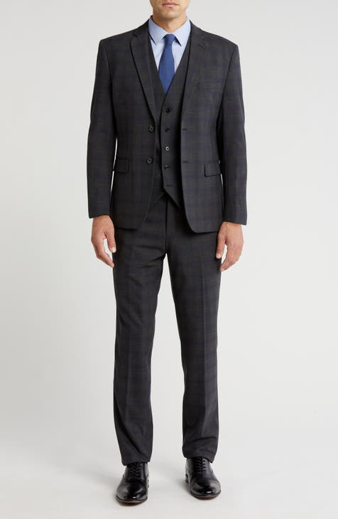 Traje de 3 piezas de corte entallado a cuadros verde oliva oscuro