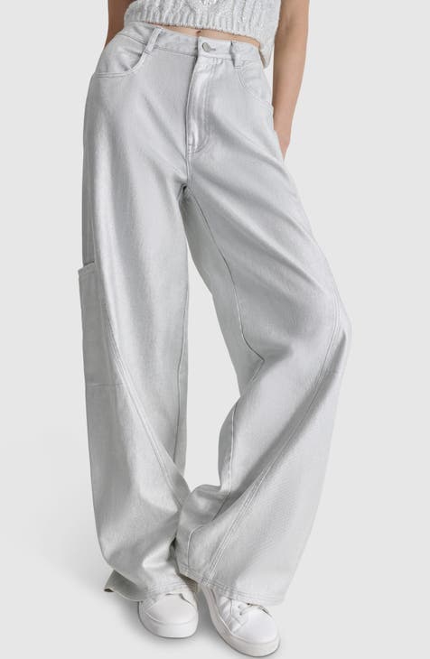 Vaqueros cargo limpios de cintura alta y no elásticos (plateados)
