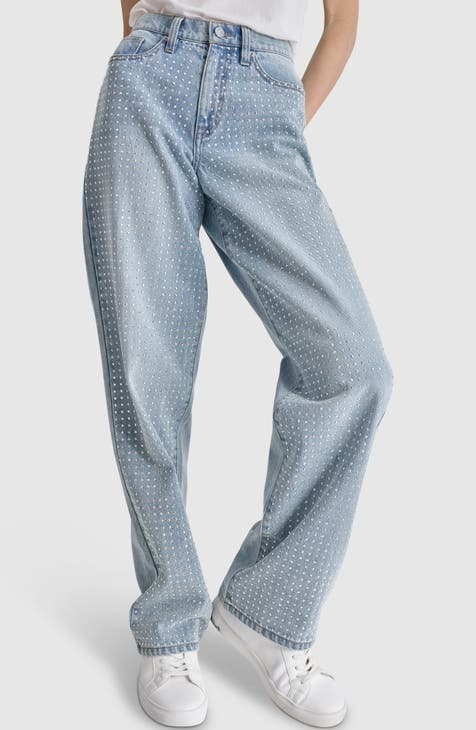 Vaqueros de cintura alta con tachuelas de diamantes de imitación
