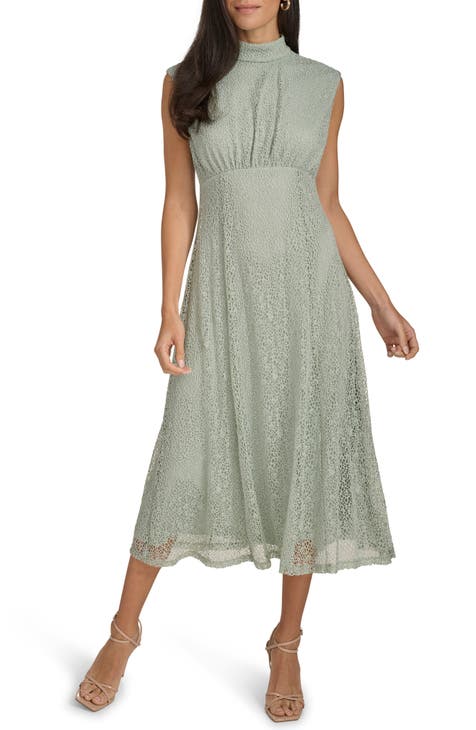 Vestido acampanado de encaje sin mangas con cuello simulado