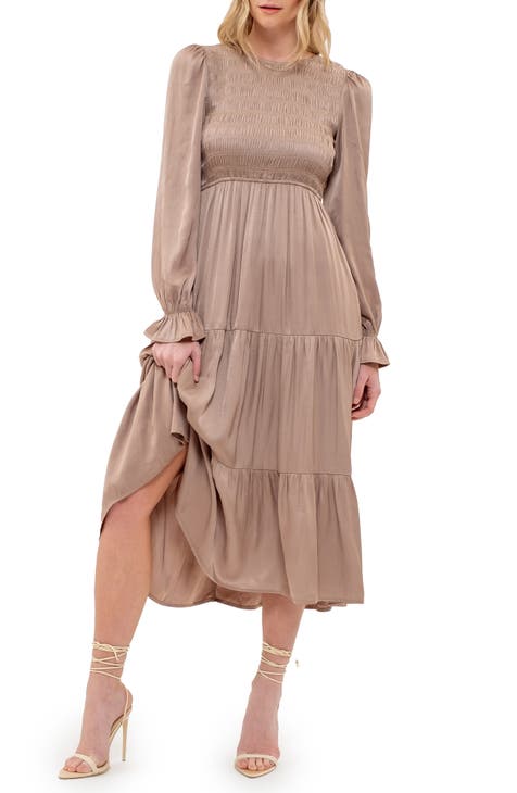 Vestido de manga larga fruncido de satén