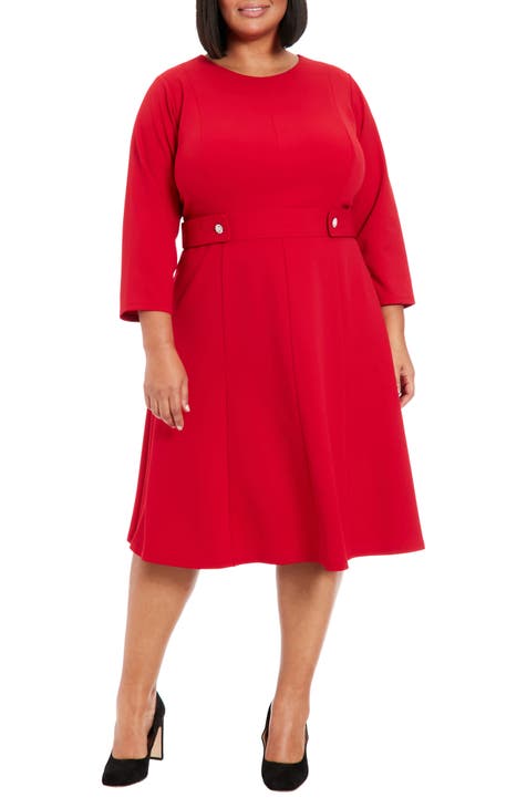 Vestido entallado y con vuelo con trabilla en la cintura y diamantes de imitación (Plus)
