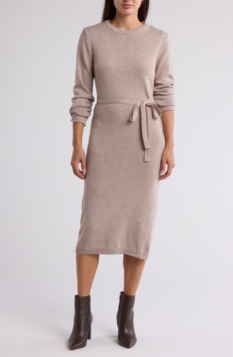 Vestido estilo suéter de manga larga con lazo en la cintura del condado de Cortlánnd