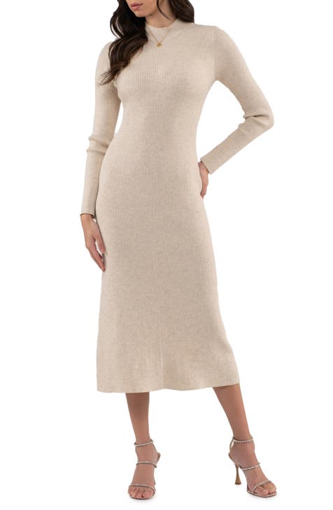 Vestido estilo suéter midi de manga larga de canalé brillante