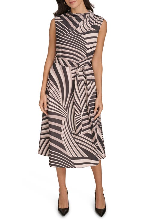 Vestido midi de satén con cuello vuelto y rayas