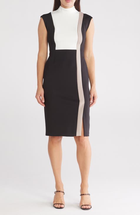 Vestido tubo con mangas japonesas y cuello simulado en bloques de color