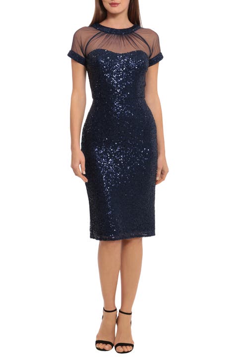 Vestido tubo de lentejuelas de manga corta Illusion (Regular y Plus)